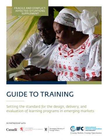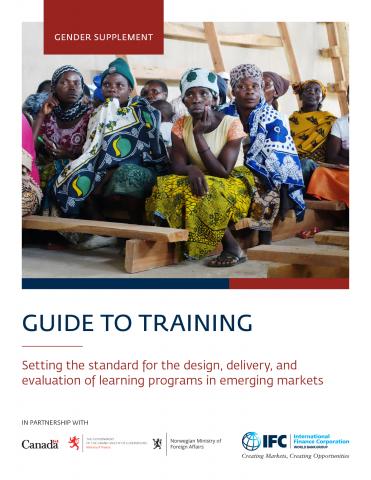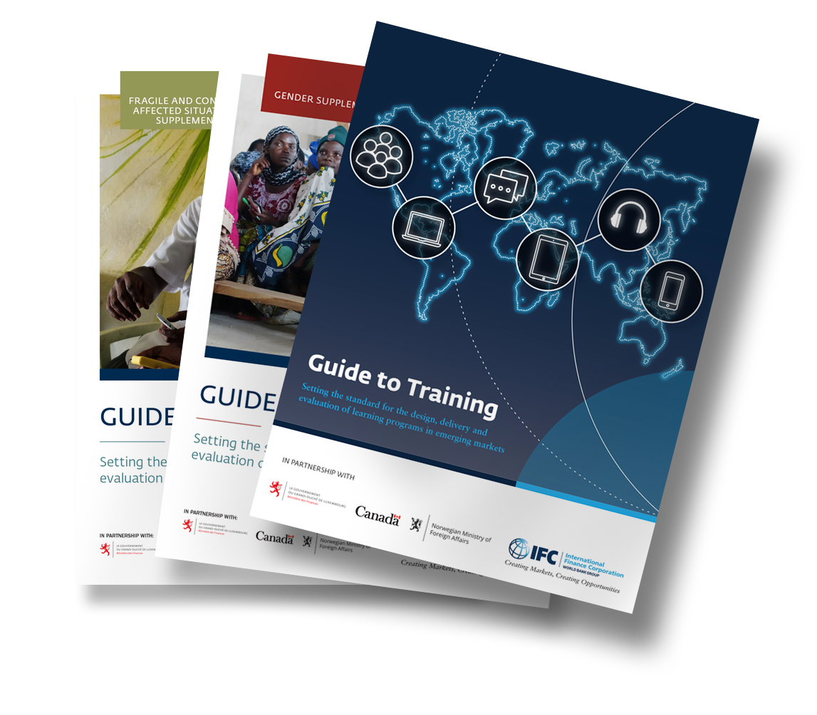 The Guide to Training is based on competencies initially created by The Institute for Performance and Learning (I4PL) and captures knowledge and best practices from a range of learning institutions and specialists. Experts on gender-inclusive initiatives and IFC staff working in emerging markets and fragile and conflict-affected situations (FCS) have contributed their experience and lessons learned.